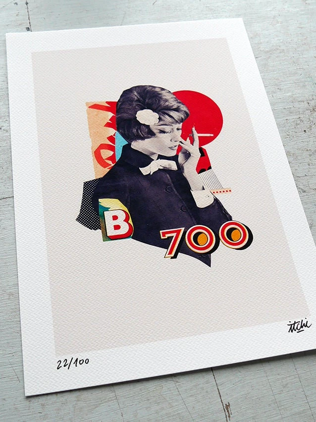 Itchi est un artiste et illustrateur parisien. Passionné par les années 50 et 60, il collectionne, fouille et découpe livres et revus pour créer des images colorées, joyeuses ou décalées, souvent empruntes de nostalgie. Son travail redonne vie à des personnages, des visages, des objets habitants du passé dans des compositions originales. Il collabore avec la presse, le monde de la culture, designers d’intérieur et participe régulièrement à des expositions en France et à l’étranger. Les images colorées et les collages rétros d’Itchi vous transportent dans le passé.
