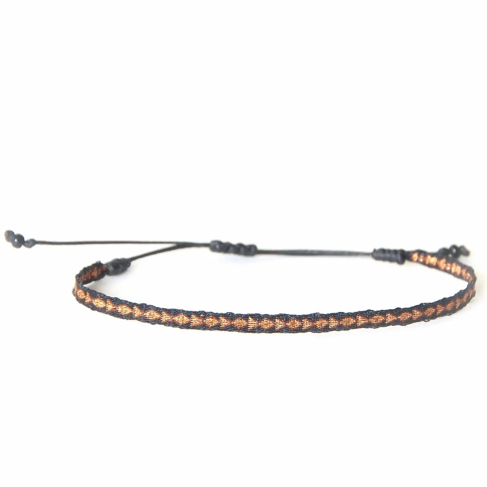 Bracelet fin de couleur noire avec un fil brillant bronze. Ce bracelet 100% fait à la main.
