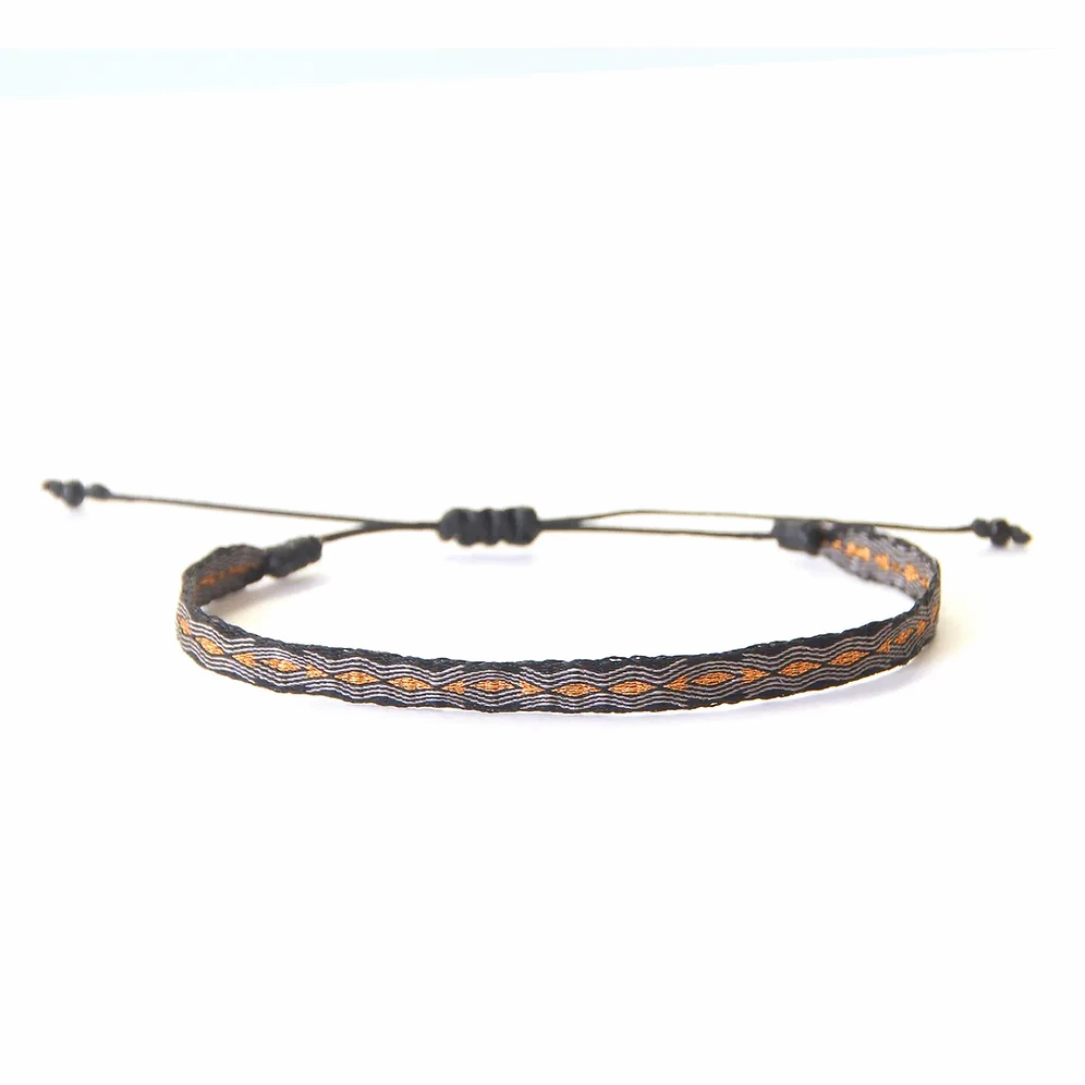 Bracelet large de couleur noir, gris avec un fil métalisé bronze. Ce bracelet est 100% fait à la main.
