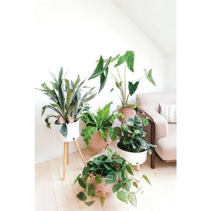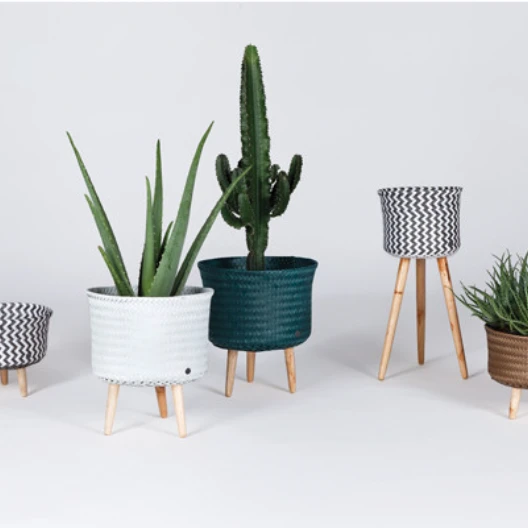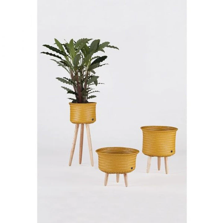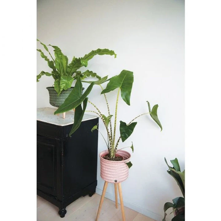C’est un joli cache pot pour les plantes mais il est aussi utilisable comme panier de rangement. Avec les trois pieds de couleurs bois, vont plantes apporteront de la couleur à votre intérieur.