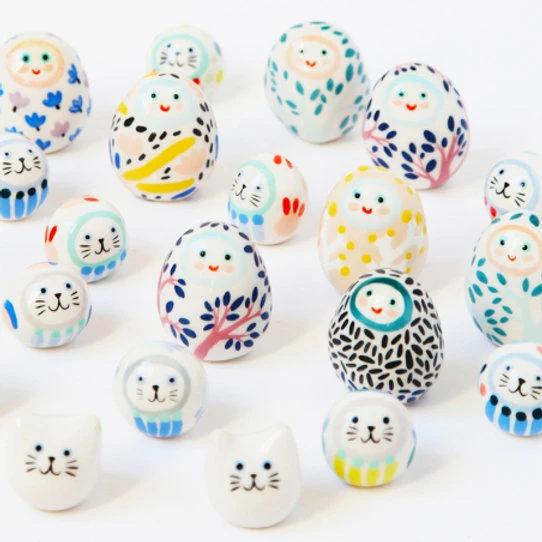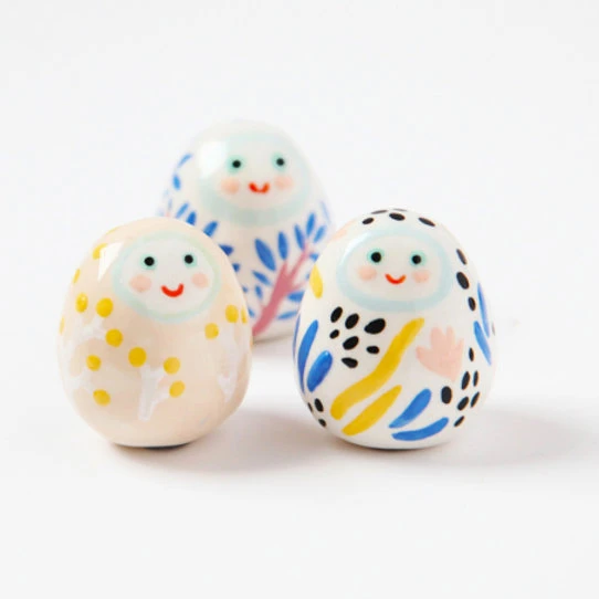 D’inspiration japonaise, ces petits personnages forment la famille des esprits de la nature, du matin, du rivage, de l’arbre, du vent de la mer, du chemin, du soir… Joyeusement colorés vous trouverez celui qui vous correspond le mieux.