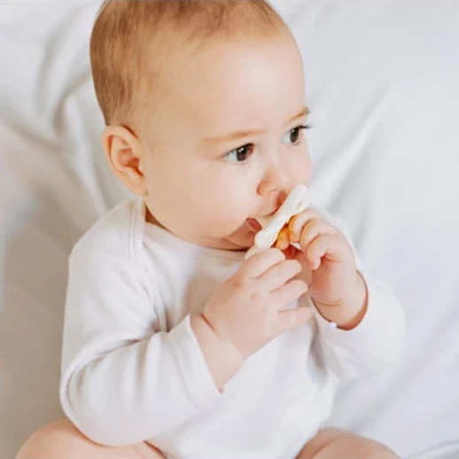Ce jouet de dentition Chewy-to-Go favorise le développement naturel du palais et de la mâchoire des nouveau-nés. C’est un jouet sain, biodégradable et sans aucun risque pour les enfants.
