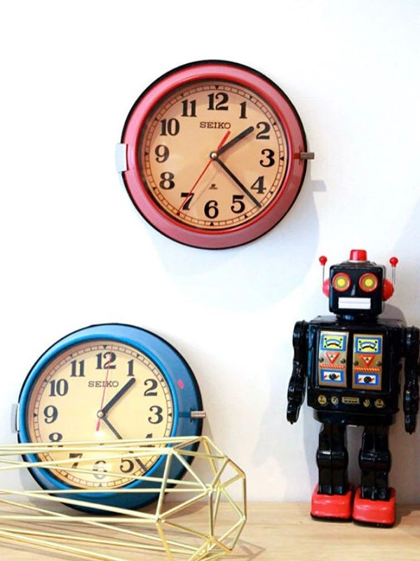 Fabriqués dans les années 70 au japon ces horloges « esclave » étaient toute relié par du fil électrique dans le bateau à l’horloge mère qui se situait dans la cabine du capitaine. Celle-ci réglait l’heure du bateau à chaque changement de fuseau horaire et mettait les centaines d’horloges à l’heure en même temps.