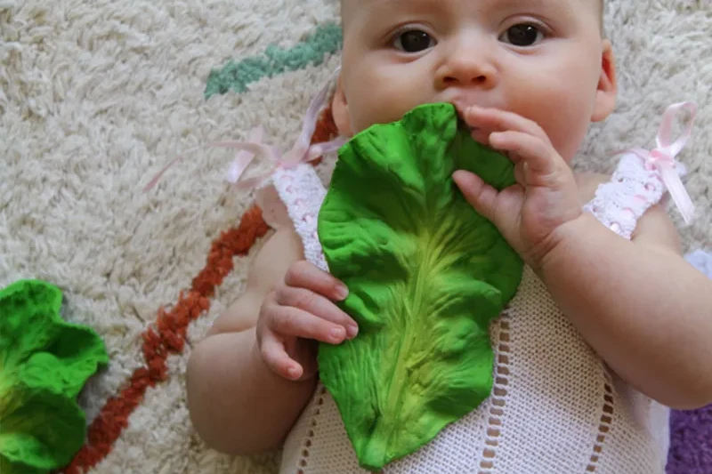 Kendall le chou frisé est un jouet de dentition pour les bébés de la marque barcelonaise Oli&Carol.