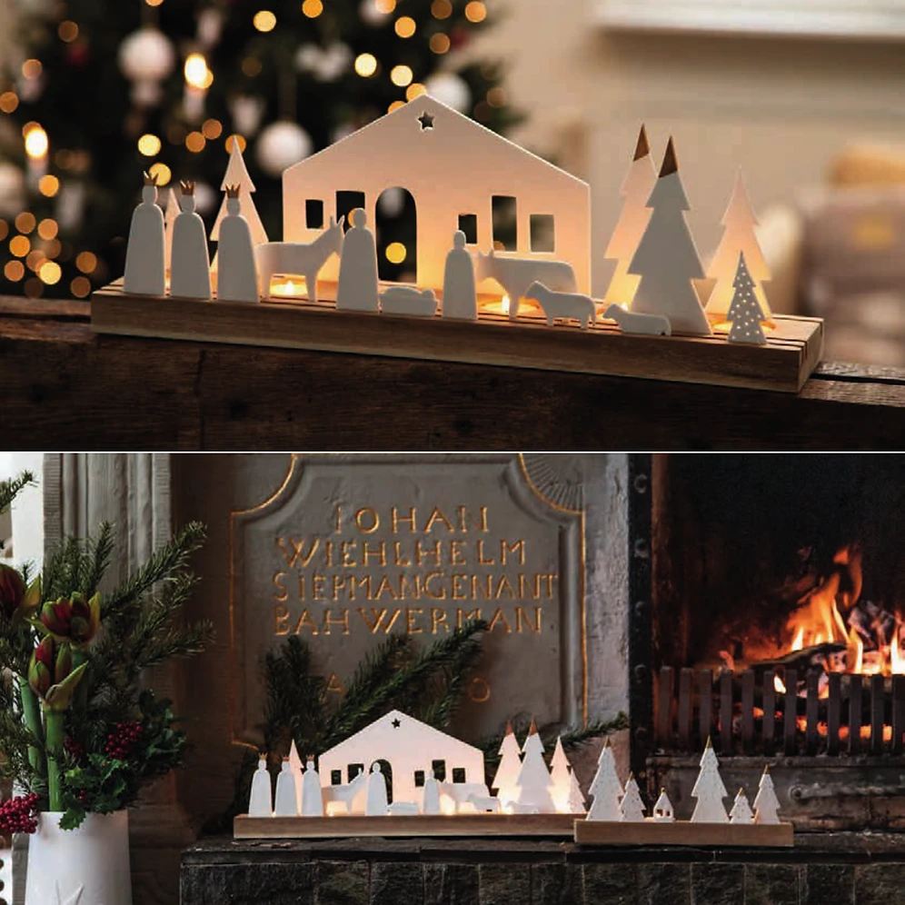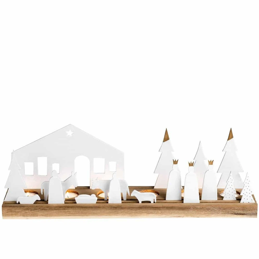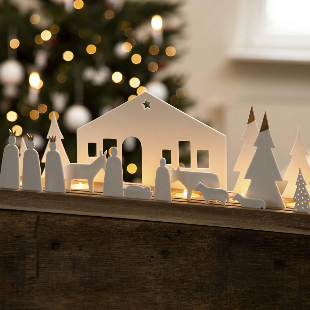 Grande crèche lunineuse avec 6 photophores au design scandinave, délicat et minimaliste.