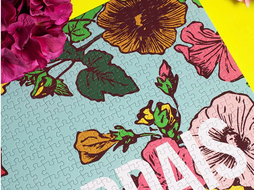 Un magnifique puzzle coloré qui est un hommage à l’époque où l’on croyait qu’une personne qui s’amusait à faire des puzzles était ennuyeuse et soporifique. Cash et décoratif !