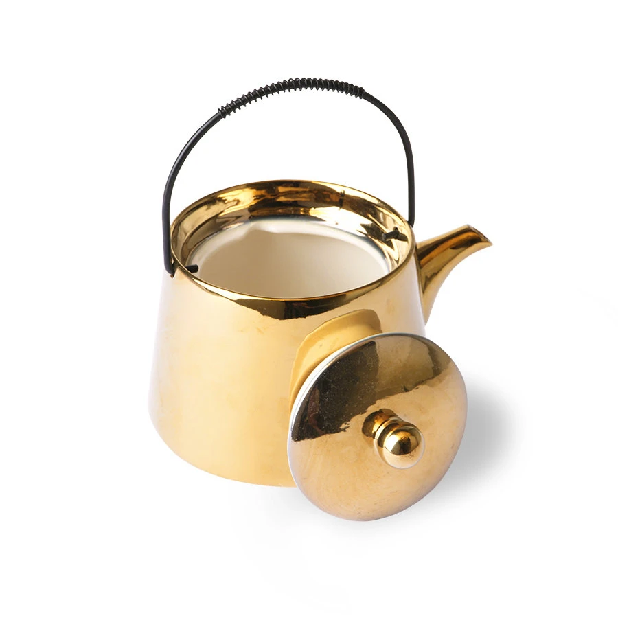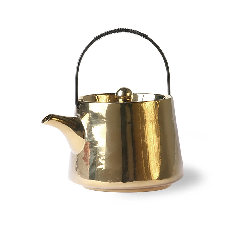 Une théière artisanale de couleur or, pour les amateurs de thé.