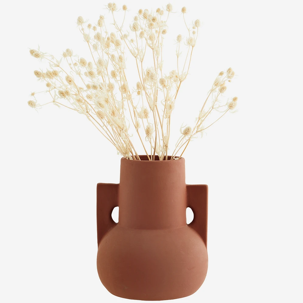 Très jolie vase en terre cuite à poignées, idéal pour ajouter une touche chic et originale à votre intérieur. Parfait pour accueillir un beau bouquet de fleurs.